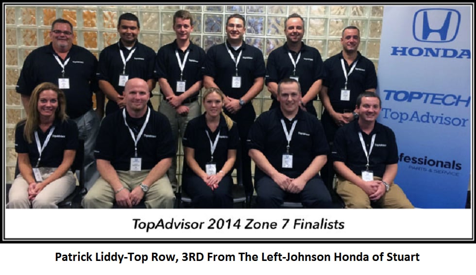 Johnson Honda is proud of Patrick Liddy and our whole team of Top Tech Advisors!