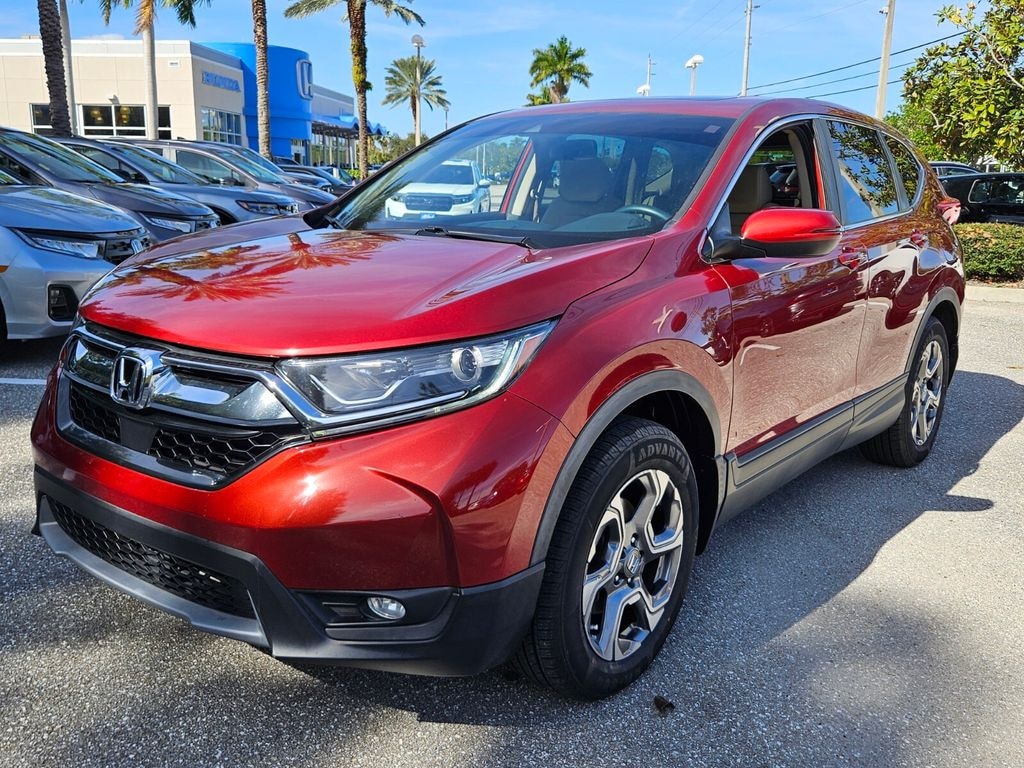 Priced below KBB Fair Purchase Price! Molten Lava 2019 Honda CR-V EX-L AWD CVT 1.5L I4 DOHC 16V 27/33 City/Highway MPG 18" Alloy Wheels, Apple CarPlay/Android Auto, Auto High-beam Headlights, Automatic temperature control, Blind Spot Information (BSI) System warning, Exterior Parking Camera Rear, Forward collision: Collision Mitigation Braking System (CMBS) + FCW mitigation, Front dual zone A/C, Heated front seats, Lane departure: Lane Keeping Assist System (LKAS) active, Leather Seat Trim, Memory seat, Power driver seat, Power Liftgate, Power moonroof, Power passenger seat.