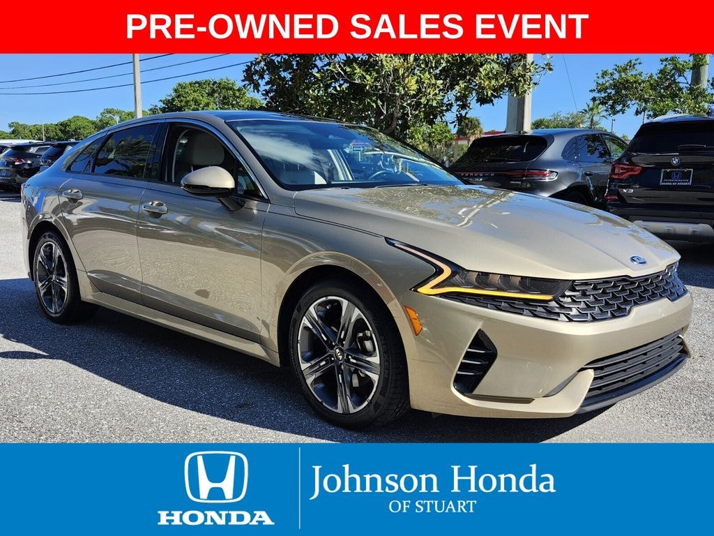 Priced below KBB Fair Purchase Price! Crystal Beige 2021 Kia K5 EX FWD 8-Speed Automatic 1.6L I4 DGI 27/37 City/Highway MPG Apple CarPlay & Android Auto, Automatic temperature control, Front dual zone A/C, Heated & Ventilated Front Bucket Seats, Power driver seat, Power moonroof, Wheels: 7.5J x 18" Gray Machined Finish Alloy.