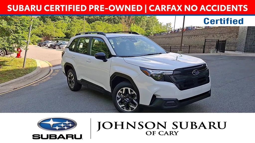 New Price! Certified. Crystal White Pearl 2025 Subaru Forester AWD Lineartronic CVT 2.5L 4-Cylinder DOHC 16V SUBARU CERTIFIED PRE-OWNED, CARFAX NO ACCIDENTS, EYE SIGHT TECHNOLOGY, LANE KEEP, APPLE CAR PLAY!, H4, AWD, BACKUP CAMERA, BLUETOOTH.